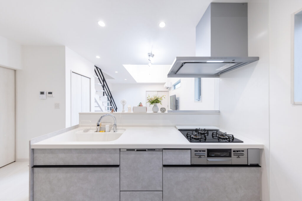 家族との会話が自然と生まれる対面式キッチン。