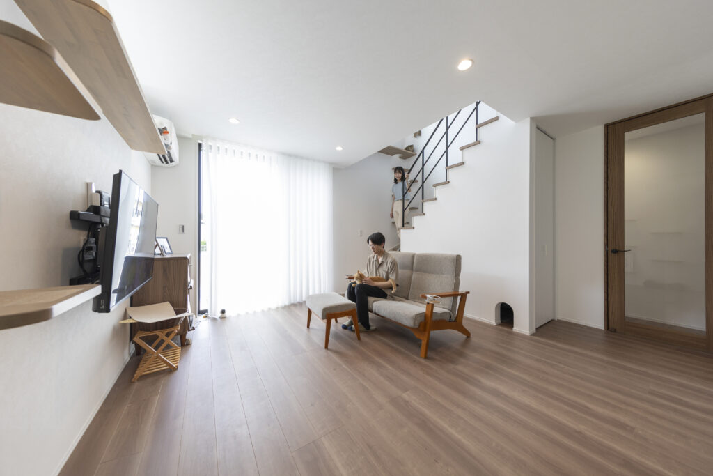 愛猫と心地よく暮らす、やさしい住まい。猫も人も快適に過ごせるように工夫を凝らした、癒しの住まい。リビングや階段にキャットウォークを設け猫が自由に動き回れる設計に。自然光がたっぷり入る空間は、愛猫のくつろぎ場所にもぴったりです。